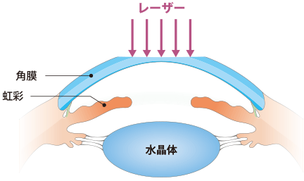 レーザーによって角膜表面を一部剥離し、現れた角膜の一部をレーザーで削り、光の屈折を調節する手術です。